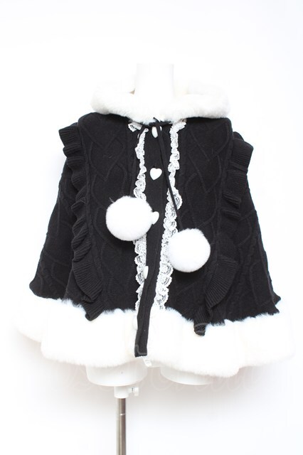 Ank Rouge / うさちゃんニットポンチョ M 黒 Y-26-01-31-146-CA-CO-SZ-ZY