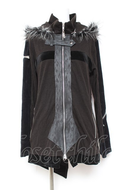 Sixh / ベロア切替ファーフードパーカー 黒 Y-26-01-31-096-HN-TO-SZ-ZY [2100070000060518-Y-26-01-31-096-HN-TO-SZ-ZY]