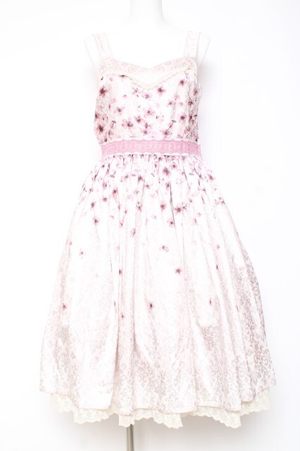 axes femme kawaii / 桜柄ジャンパースカート M ピンク Y-26-01-31-107-AX-OP-SZ-ZY