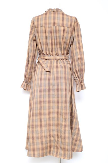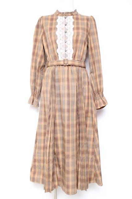axes femme / プリーツ切替チェック柄ワンピース M 茶 Y-26-01-31-115-AX-OP-SZ-ZY