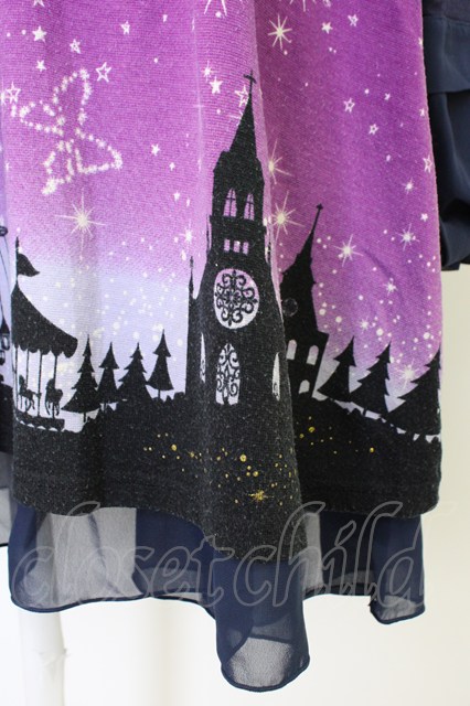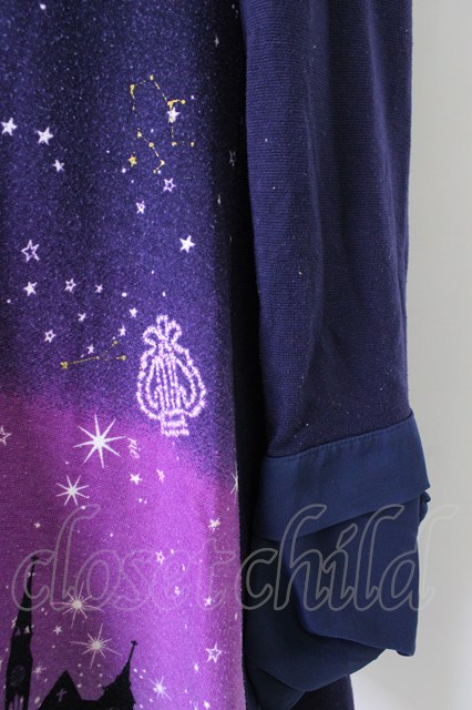 axes femme / 星座グラデ柄カットチュニック M パープル T-26-02-01-004-AX-OP-SA-ZT
