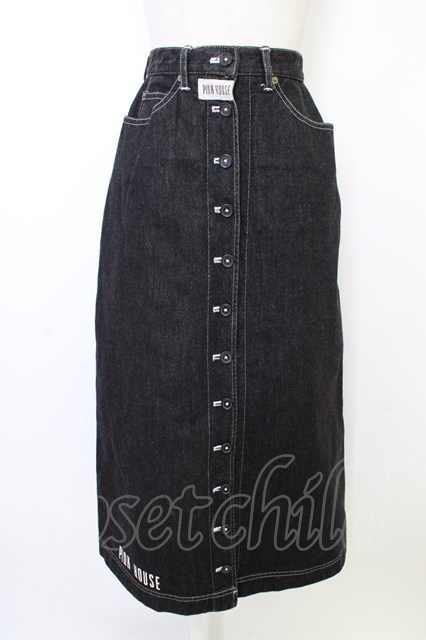 PINK HOUSE / ロゴワッペン前開きデニムスカート ブラック T-26-02-01-020-LO-SK-SA-ZT [2100060000034043-T-26-02-01-020-LO-SK-SA-ZT]