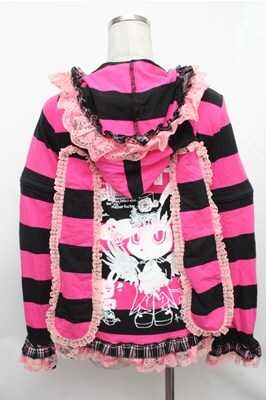 MARI'S ROCK / うさみみボーダーパーカー 黒xピンク S-26-01-31-032-PU-BL-HR-ZS [2100020000037067-S-26-01-31-032-PU-BL-HR-ZS]