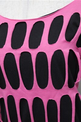 SEXY DYNAMITE LONDON / 袖ボーダーカットソー 黒xピンク S-26-01-31-033-PU-TO-HR-ZS