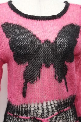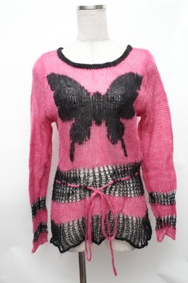 ALGONQUINS / バタフライプリントモヘアニット 黒xピンク S-26-01-31-037-AL-TO-HR-ZS [2100020000037037-S-26-01-31-037-AL-TO-HR-ZS]