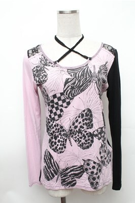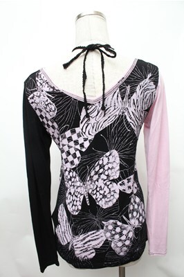 ALGONQUINS / バタフライプリントカットソー ピンクx黒 S-26-01-31-038-AL-TO-HR-ZS
