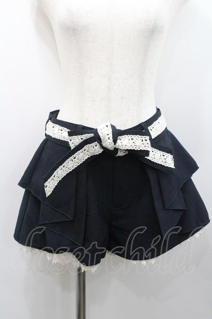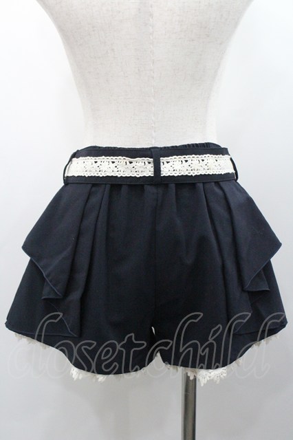 Ank Rouge / ウエストリボンショートパンツ ネイビーX白 I-26-01-31-094-CA-PA-SA-ZI