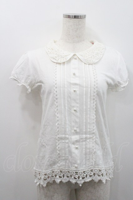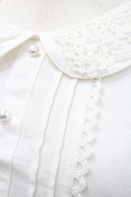 Ank Rouge / レースパール襟ブラウス風カットソー 白 I-26-01-31-003-CA-TO-SA-ZI