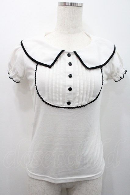 Ank Rouge / フロントピンタック半袖カットソー 白x黒 I-26-01-31-005-CA-TO-SA-ZI [2100060000049126-I-26-01-31-005-CA-TO-SA-ZI]