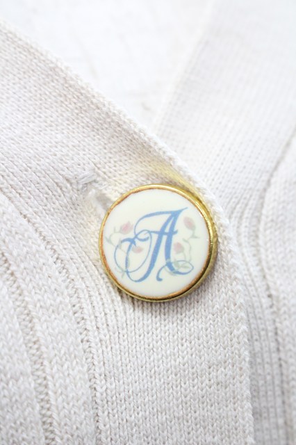 an another angelus / カリグラフィーローズプリント釦カーディガン ベージュ I-26-01-31-044-CA-TO-SA-ZI