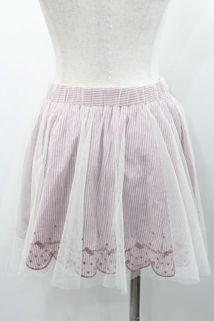 Ank Rouge / チュール重ねストライプ&裾スカラップリボン刺繍スカート アイボリーXピンク I-26-01-31-081-CA-SK-SA-ZI