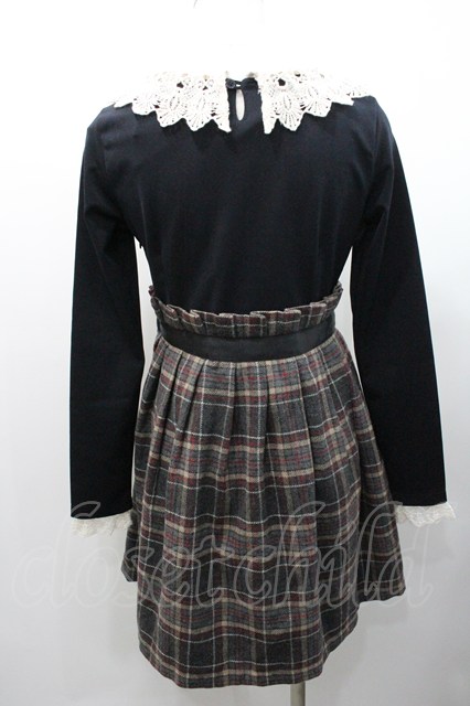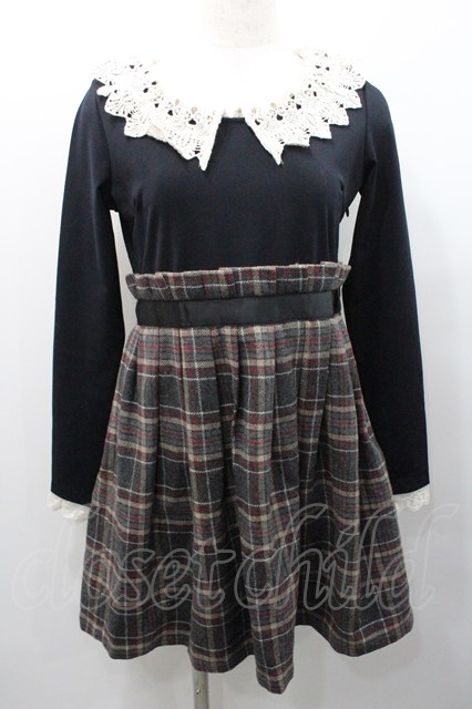 Ank Rouge / タータンチェック切り替え長袖ワンピース 黒xグレーチェック I-26-01-31-069-CA-OP-SA-ZI [2100060000049125-I-26-01-31-069-CA-OP-SA-ZI]