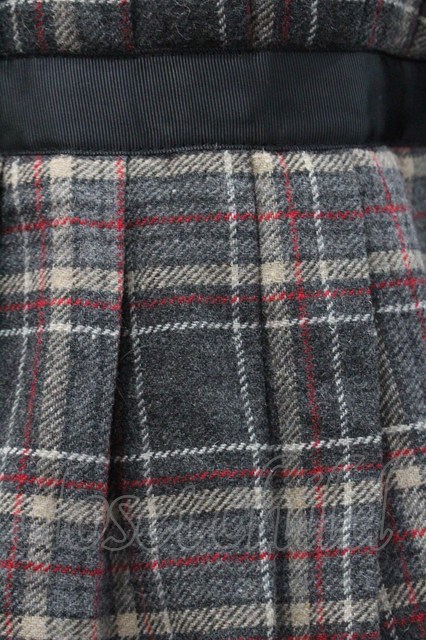 Ank Rouge / タータンチェック切り替え長袖ワンピース 黒xグレーチェック I-26-01-31-069-CA-OP-SA-ZI
