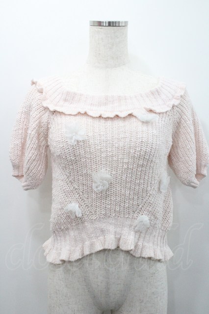 LIZ LISA / フラワーモチーフ付き半袖パフスリーブニットトップス ピンク I-26-01-31-008-LO-TO-SA-ZI