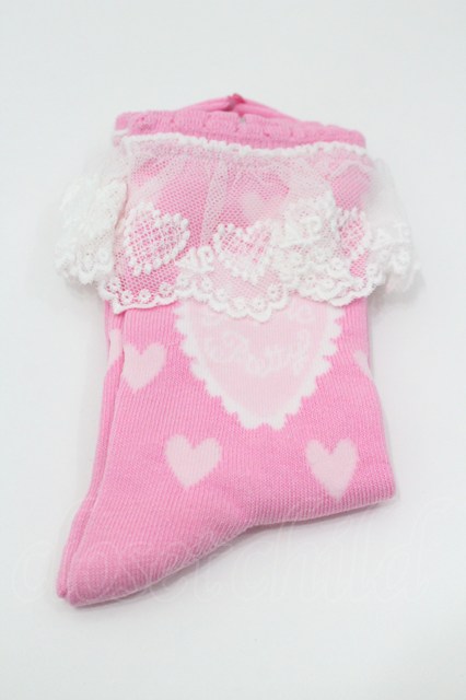 Angelic Pretty / Diner Heartクルー丈ソックス ピンク I-26-01-31-102-AP-ZA-SA-ZI