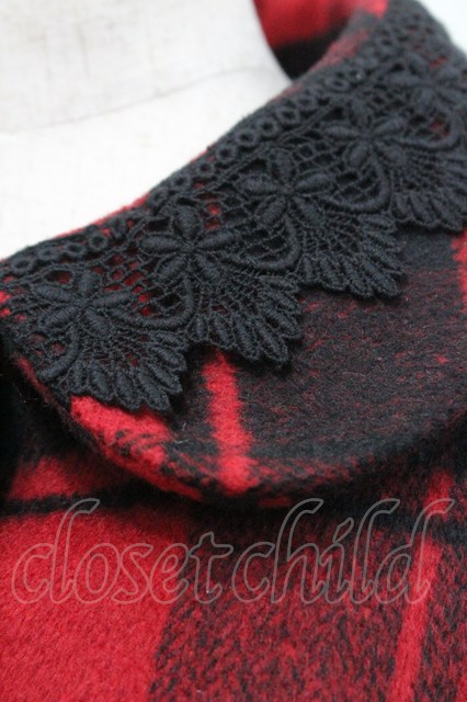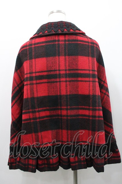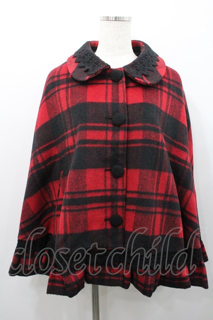 Ank Rouge / レース使いチェック柄ケープ 赤X黒チェック I-26-01-31-046-CA-CO-SA-ZI
