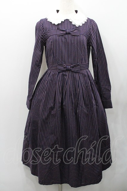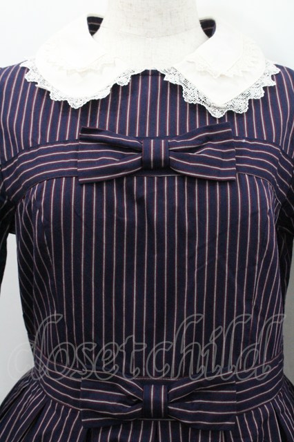 Melody BasKet / ダブルリボンレジメンタルストライプワンピース ネイビー I-26-01-31-066-LO-OP-SA-ZI