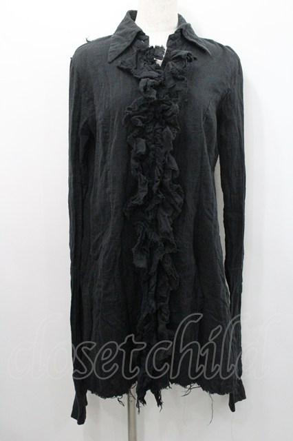 alice auaa / ガーゼフリルロングシャツ 黒 I-26-01-31-014-AA-BL-SA-ZI [2100060000050121-I-26-01-31-014-AA-BL-SA-ZI]