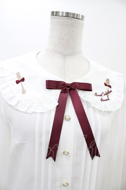Amavel / カトラリー刺繍襟ブラウス Free オフ H-26-02-06-041-CA-BL-NS-ZH
