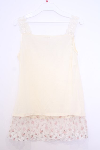 axes femme / 花柄チュールレース使いタンク アイボリー O-26-01-30-1040-AX-TO-IG-OS
