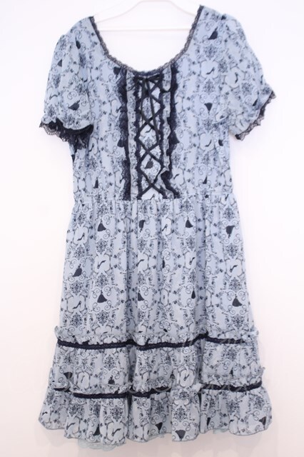 axes femme / シルエット柄ワンピース サックス O-26-01-30-1044-AX-OP-IG-OS
