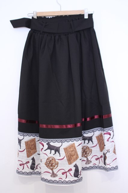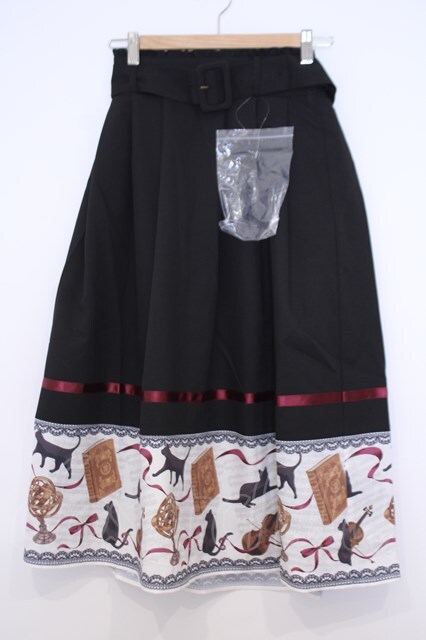 axes femme / ネコ柄パネルスカート M クロ O-26-01-30-1023-AX-SK-IG-OS
