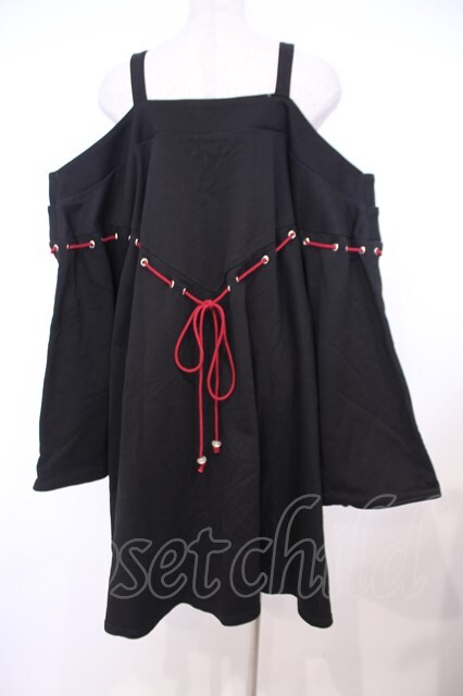 Favorite / 着物袖オフショルトップス クロ×アカ O-26-01-30-1002-LO-JA-IG-OS