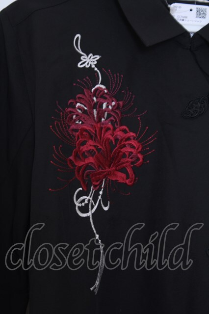 axes femme / 彼岸花柄ショートシャツ F クロ O-26-01-30-1031-AX-BL-IG-OS [2100080000070339-O-26-01-30-1031-AX-BL-IG-OS]