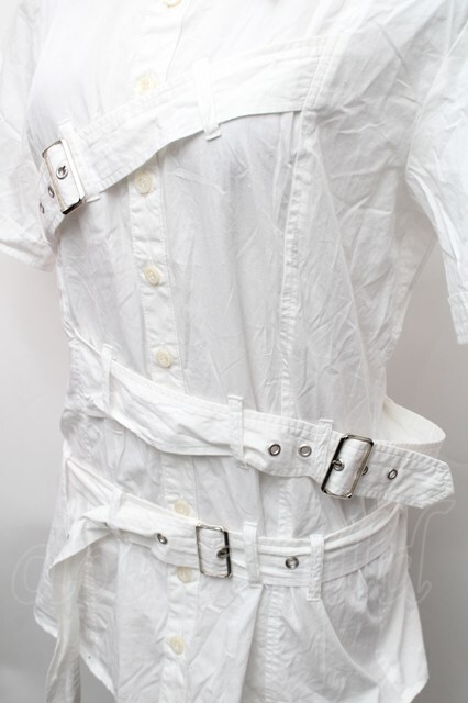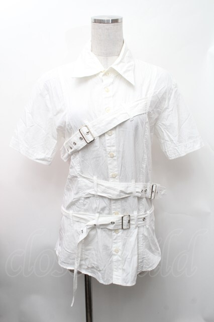 BPN FOR MEN / ベルトデザイン半袖シャツ 白 S-26-01-31-1006-GO-BL-HR-ZS