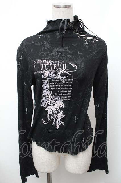 h.naoto Blood / プリント裾レースカットソー 黒 S-26-01-31-1017-HN-TO-HR-ZS [2100020000037028-S-26-01-31-1017-HN-TO-HR-ZS]