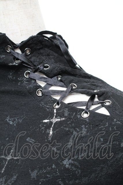 h.naoto Blood / プリント裾レースカットソー 黒 S-26-01-31-1017-HN-TO-HR-ZS
