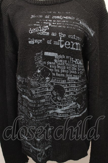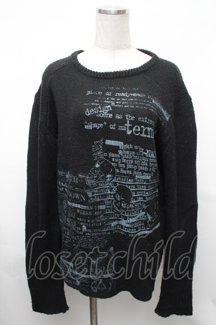 h.ANARCHY / スカルx英字プリントニット 黒 S-26-01-31-1019-HN-TO-HR-ZS