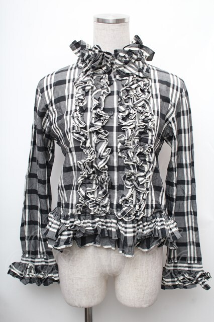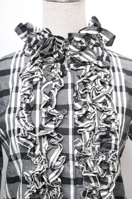 SEXY DYNAMITE LONDON (CHOICE) / チェックフリルブラウス 黒x白 S-26-01-31-1025-PU-TO-HR-ZS [2100020000037152-S-26-01-31-1025-PU-TO-HR-ZS]