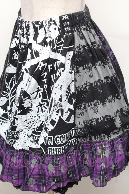 HANGRY&ANGRY / キャラクター切替チェックイレヘムスカート 黒x紫 S-26-01-31-1045-HN-SK-HR-ZS