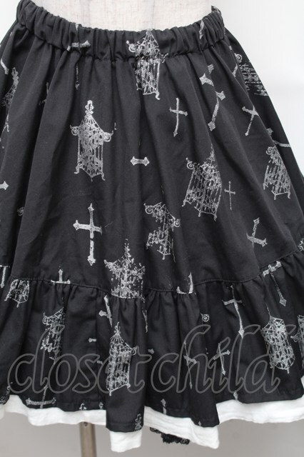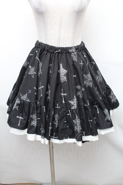 FRILL / 裾レイヤードプリントスカート 黒x白 S-26-01-31-1046-HN-SK-HR-ZS