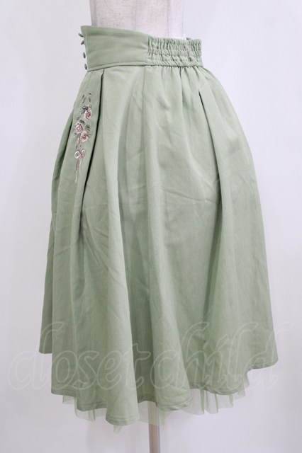 axes femme / リボンローズ刺繍タックスカート M ミント H-26-02-04-028-AX-SK-NS-ZH