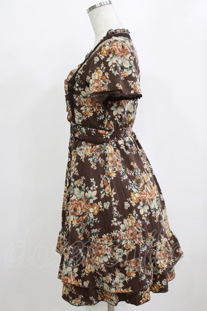 axes femme / 花柄ワンピース M ブラウン H-26-02-04-030-AX-OP-NS-ZH [2100030000085405-H-26-02-04-030-AX-OP-NS-ZH]