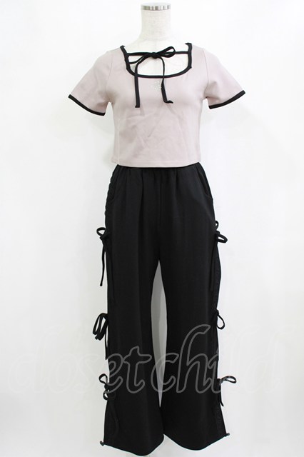 pium / ストーンロゴリボンテープパンツセット Free ピンク×ブラック H-26-02-04-047-0-OP-NS-ZH