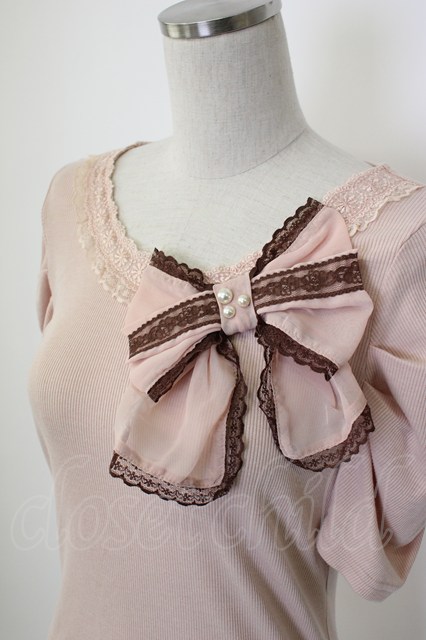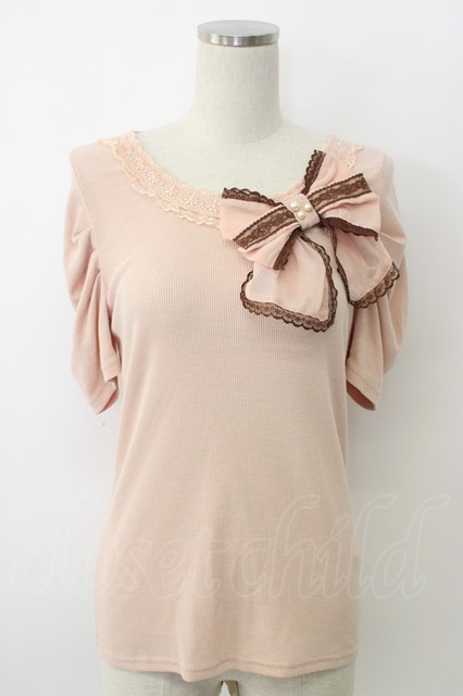 axes femme / シフォンリボン半袖トップス ピンク T-26-02-05-002-AX-TO-SA-ZT