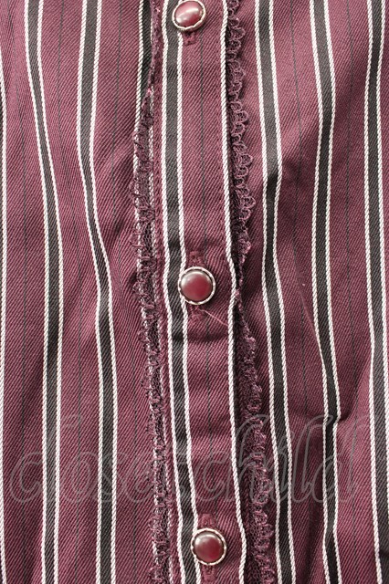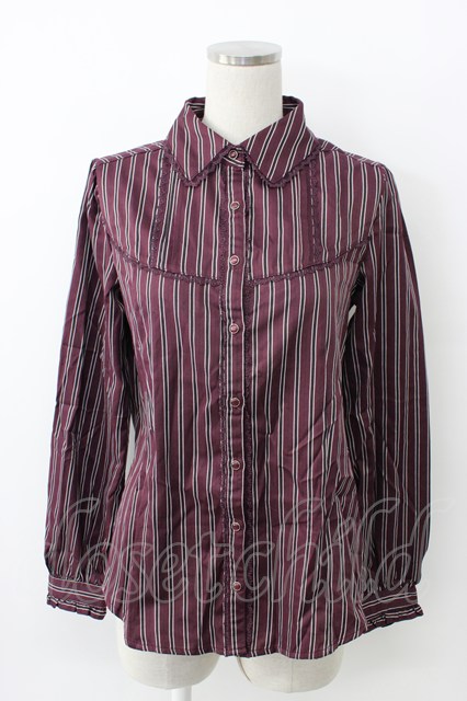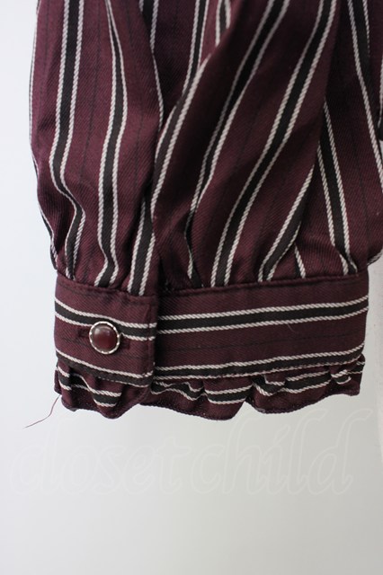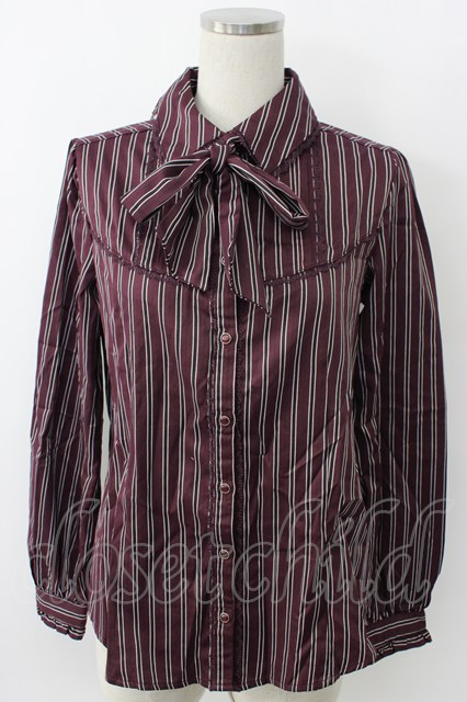 axes femme / レジメ柄フリルブラウス ワイン T-26-02-05-003-AX-BL-SA-ZT
