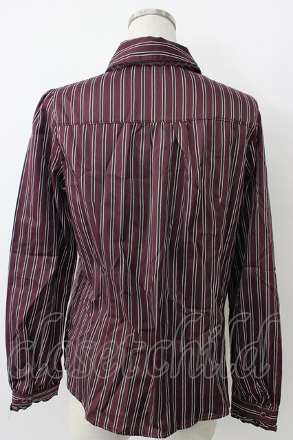 axes femme / レジメ柄フリルブラウス ワイン T-26-02-05-003-AX-BL-SA-ZT [2100060000039036-T-26-02-05-003-AX-BL-SA-ZT]