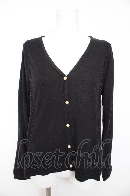 axes femme / 切替ポケット付Aラインカーディガン M 黒 Y-26-02-01-021-AX-TO-SZ-ZY