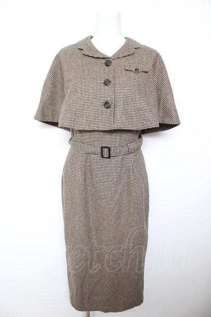an another angelus / ケープ付きチェックタイトワンピース ブラウン Y-26-02-01-059-CA-OP-SZ-ZY