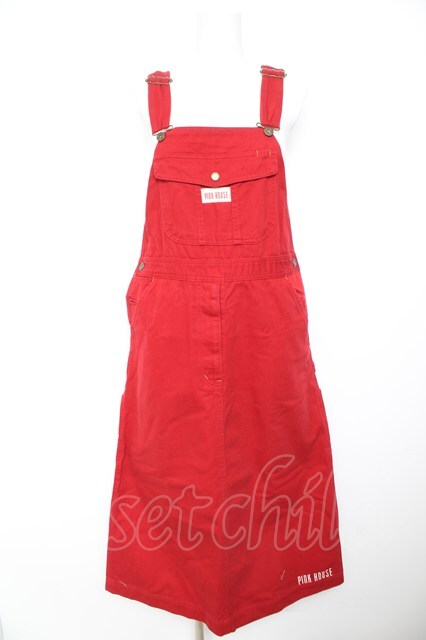 PINK HOUSE / 裾ロゴptオーバーオールジャンパースカート M 赤 Y-26-02-01-066-LO-OP-SZ-ZY [2100070000060605-Y-26-02-01-066-LO-OP-SZ-ZY]