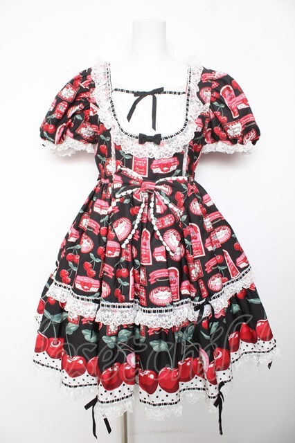 Angelic Pretty / Cherry Jam Labelワンピース 黒 Y-26-02-01-072-AP-OP-SZ-ZY
