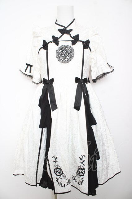 axes femme kawaii / 牡丹刺繍チャイナワンピース 白 Y-26-02-01-083-AX-OP-SZ-ZY