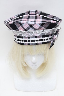 Angelic Pretty / Sugar タータンチェックベレー 黒×ピンク×サックス S-26-02-01-009-AP-AC-TE-ZS