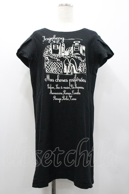 INGEBORG / 香水瓶プリント半袖チュニック 4(11号) 黒X白 I-26-02-01-071-LO-OP-SA-ZI [2100060000050362-I-26-02-01-071-LO-OP-SA-ZI]