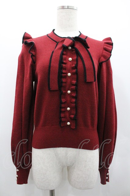 Honey Cinnamon / 肩フリル配色リボンニット ボルドーX黒 I-26-02-01-079-LO-TO-SA-ZI