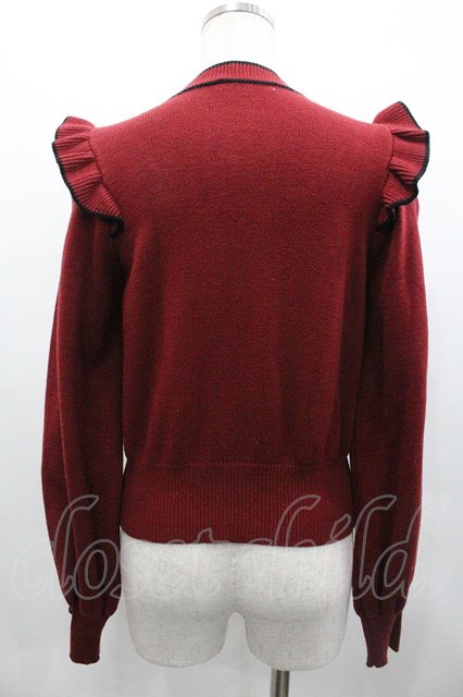 Honey Cinnamon / 肩フリル配色リボンニット ボルドーX黒 I-26-02-01-079-LO-TO-SA-ZI [2100060000050085-I-26-02-01-079-LO-TO-SA-ZI]